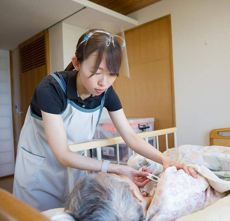 短期入所生活介護(ショートステイ)とは、在宅で介護を受けている高齢者が、短期的に施設に入所し、介護を受けるサービスです。普段介護を担っている家族のレスパイト(小休止・休息)や、冠婚葬祭など家庭のさまざまな事情等で家族が介護できない場合に利用できます。ご利用にあたっては、担当のケアマネージャーとご相談ください。